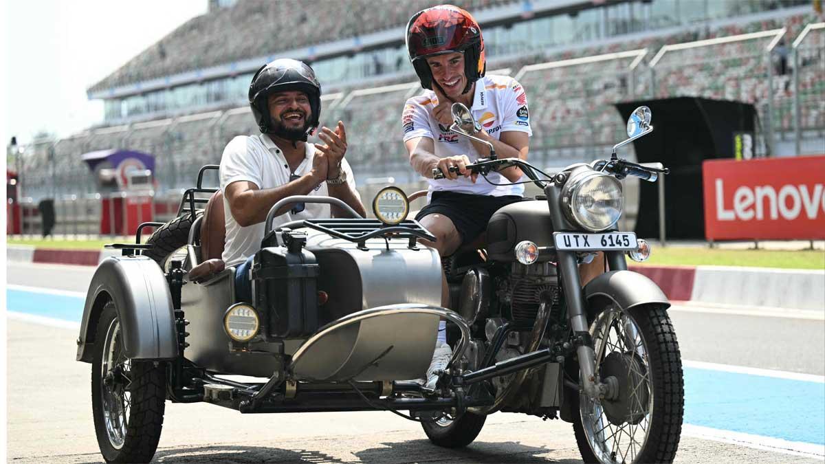 Después de solventar sus problemas de visado y aterrizar al fin en la India, Marc Márquez ha dado su primera valoración sobre el circuito ‘Buddh International’, que se estrena este fin de semana en el calendario de MotoGP. «Viéndolo andando parece bonito. Me gusta. Espero que sea igual con la moto. Si además tiene agarre, mejor», ha dicho el 93.